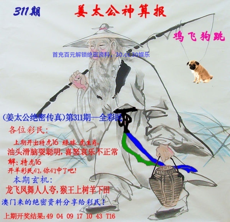 310期:单双头中特【单头】开:虎16准